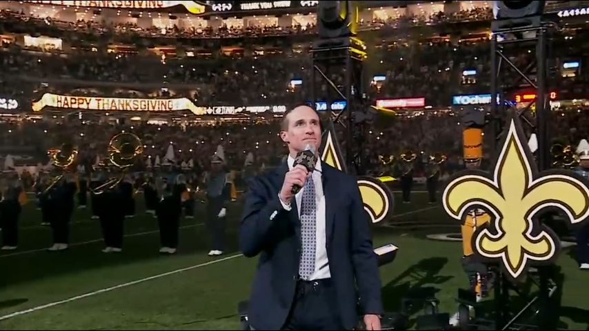 WATCH: Drew Brees honored at Superdome, delivers speech to fans on Thanksgiving