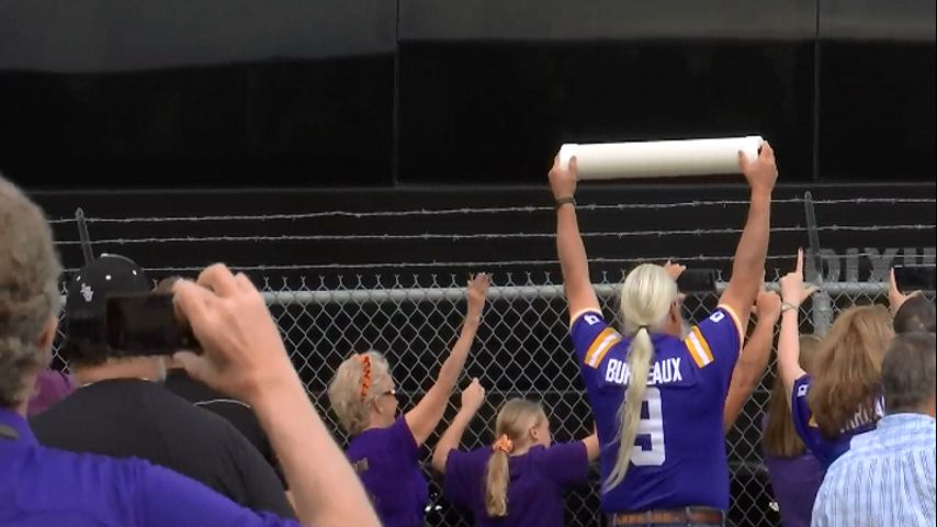 Lots of screaming die hard Tiger fans lined up to greet the team at the Baton Rouge Airport.