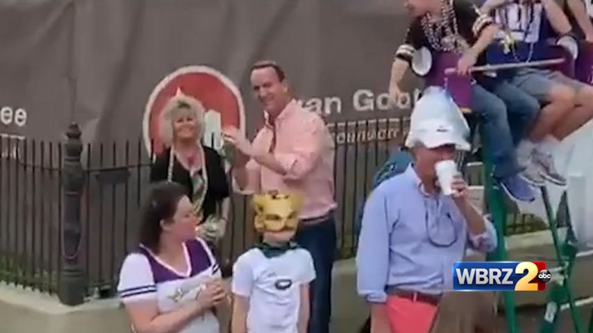 WATCH: Legendary QB Peyton Manning plays catch with riders on Mardi Gras parade route