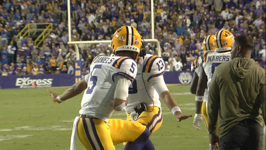 BATON ROUGE - Watch LSU commemorate multiple national champions amidst a historic game from quarterback Jayden Daniels in LSU's 52-35 win over the Florida Gators.