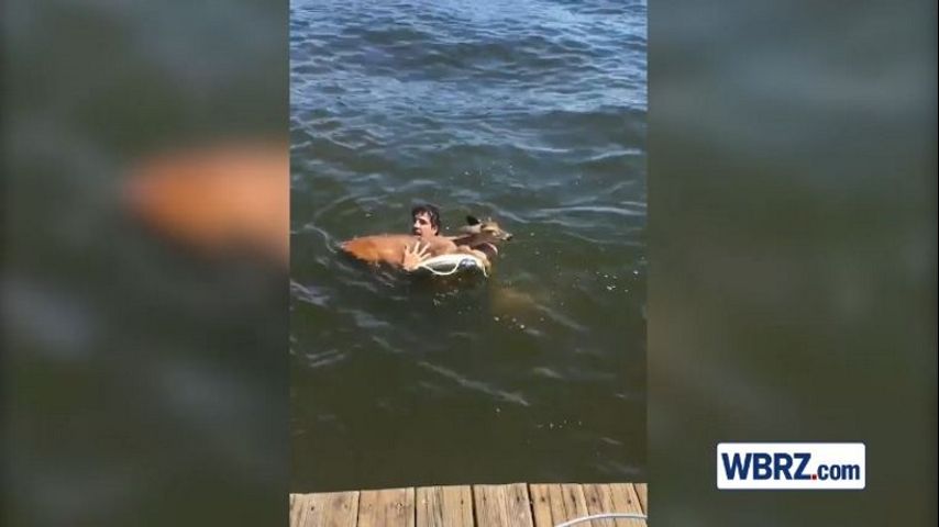 Video footage shows a resident who jumped into a lake to save a stranded deer. The video was posted by the Montgomery County Precinct One Constable's Facebook page, and captioned "Lake division assisted Walden residence rescue a deer today."