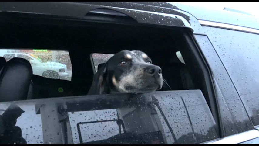 Aaron Jayjack of Austin said he was gassing up his truck when the dog jumped into his vehicle. Rather than forcing the dog out, Jayjack took to Twitter to try and find the dog's rightful owner.