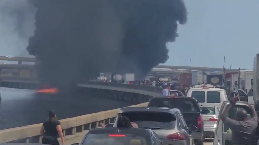Video showed flames blanketing a portion of the interstate, sending a giant smoke plume into the sky just past the Bonnet Carre Spillway.