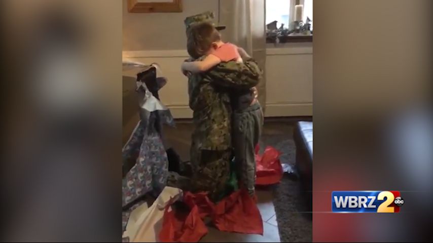 Over the weekend, a video posted on social media Friday by Jadin Hart shows her nephew opening an early Christmas present. Little did he know, his father who's been deployed was hiding inside. His reaction when he realizes what(or rather who) is inside the giant, wrapped box says it all.