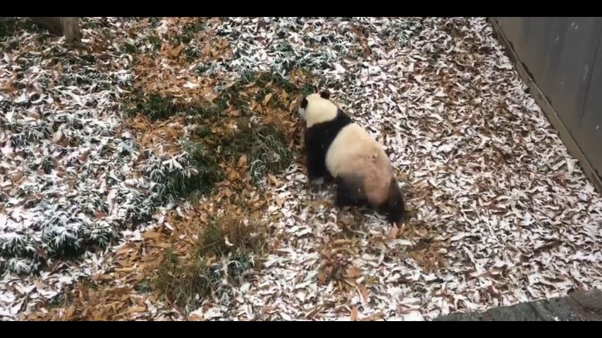 The Smithsonian's National Zoo posted a video to their Facebook page Saturday. The video shows a giant panda named Mei Xiang rolling around, playing, and enjoying the flurries.