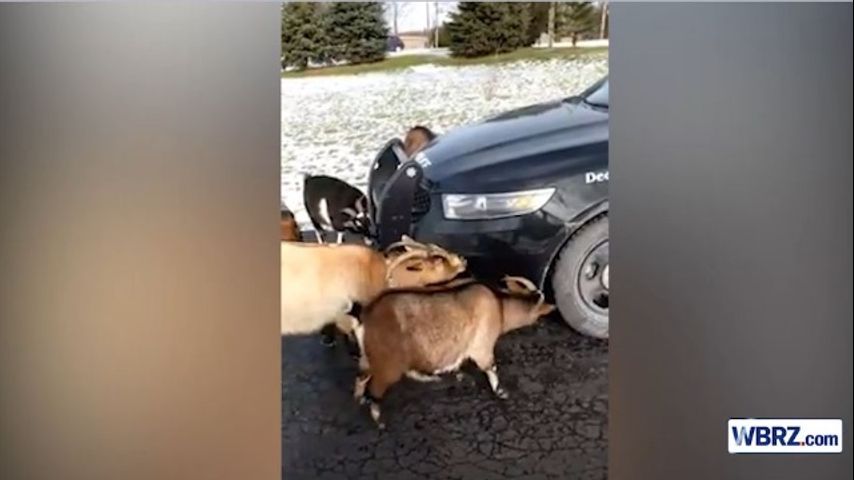 The goats quickly surrounded the police car and began to licking the salt off of the police unit. Eventually, the goats were rounded up and directed back to their enclosure.