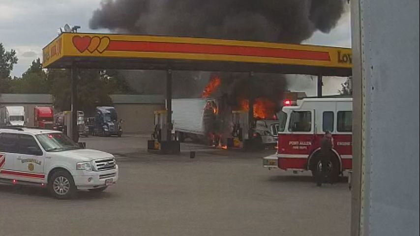 PORT ALLEN - Incredible dash camera video captured firefighters working to contain a massive, tractor-trailer fire under a fuel canopy Tuesday.