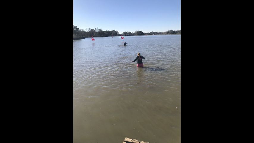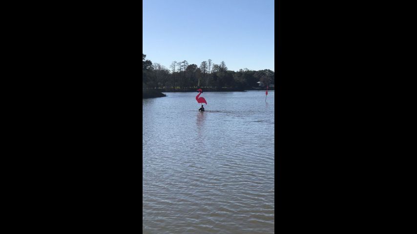 A couple of swimmers could be seen getting their flamingos from the water later on in the morning.