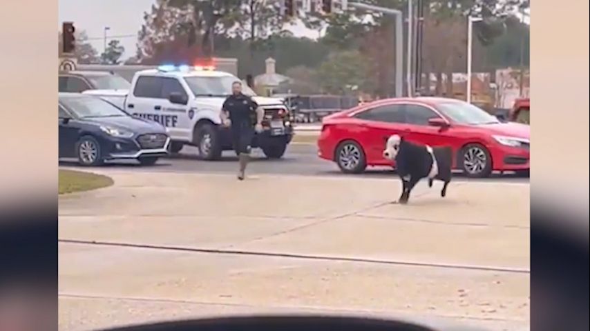 WATCH: St. Tammany sheriff's deputy chases cow across busy highway