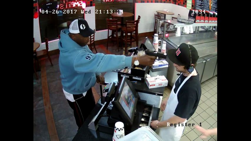 KANSAS CITY – Security video from a sandwhich shop in Kansas City captured the incredible reaction of an employee robbed at gunpoint Wednesday night.