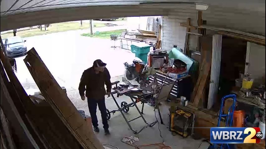 Home security footage shows the suspect walking under the carport, grabbing a table saw, and leaving.