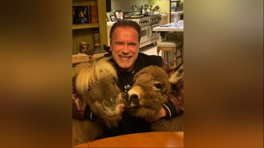 One of Twitter's trending coronavirus-related videos stars Arnold Schwarzenegger and his miniature donkey Lulu and miniature pony Whiskey.
