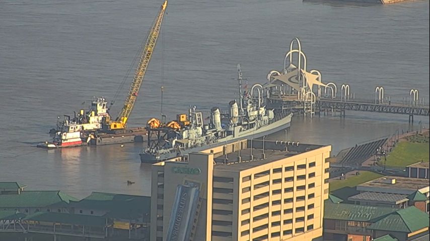 WATCH: U.S.S. Kidd moving downstream for much-needed repairs