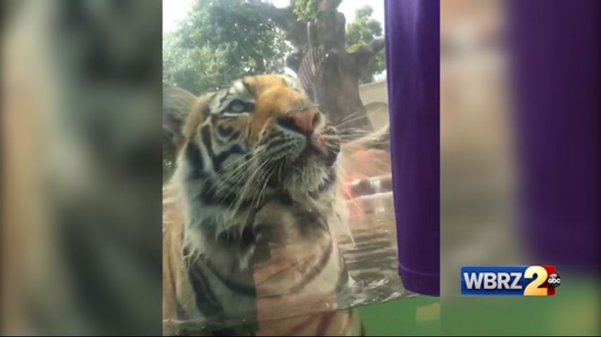 BATON ROUGE - Mike the Tiger took a moment over the weekend to show a group of visitors why you should always remain aware of your surroundings.