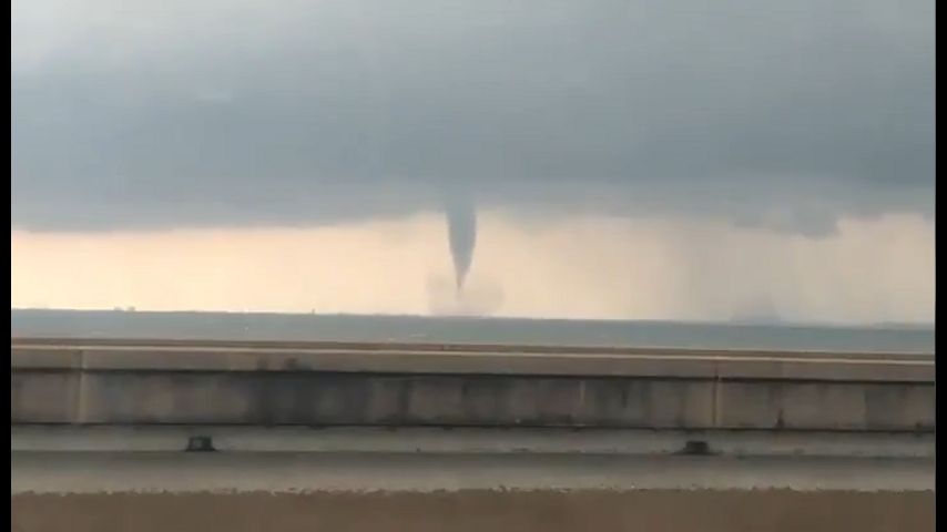 Tyler Arbour captured the video as he hit traffic on the bridge around 9 a.m. Wednesday. At least one other water spout was spotted near the city around that same time.