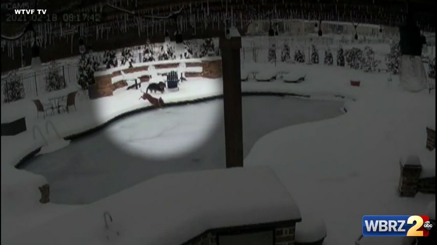 Jennie Tatum told WZTV her two dogs were playing in her backyard when one of them, Sid, slipped into the pool and fell through the ice. Tatum, who was watching from her back porch, jumped into the water to save her dog but couldn't see him through the layer of ice covering the pool.