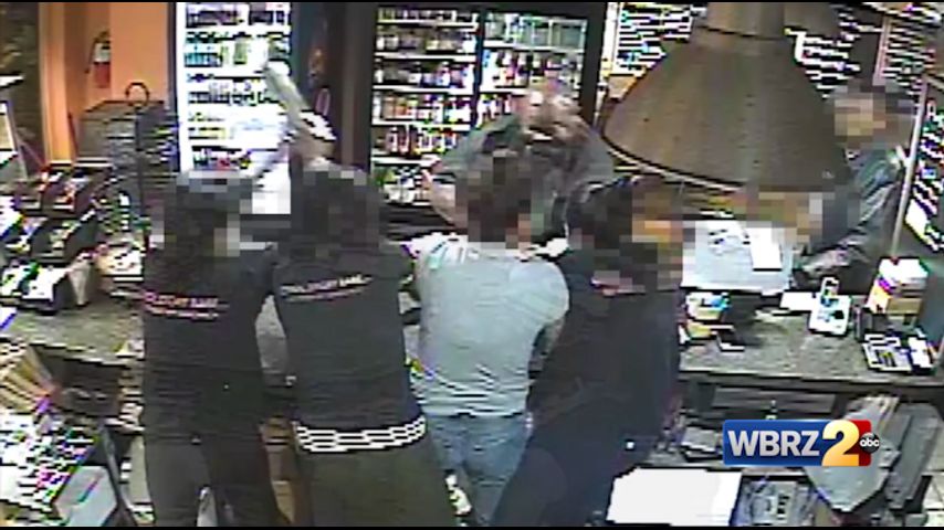 Video from Tony's Breakfast in Washington, D.C. shows the encounter between the large suspect and three employees.