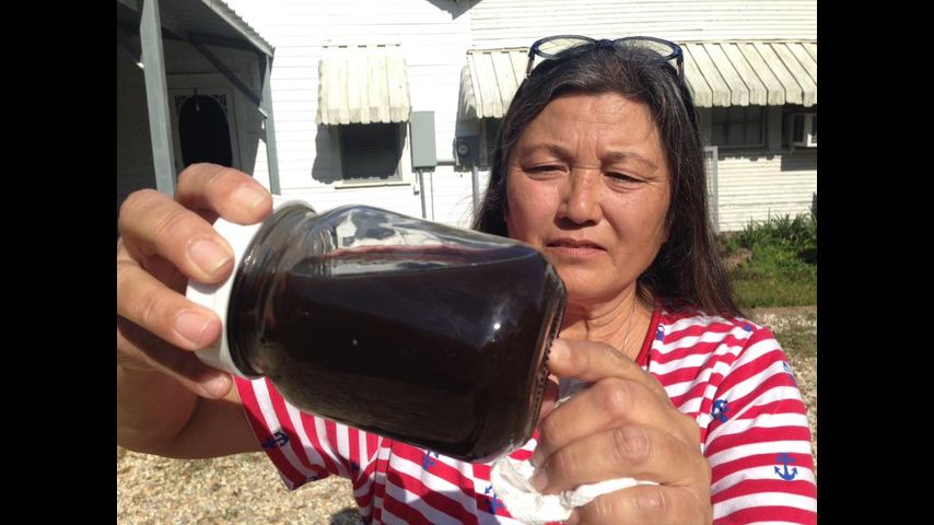 On Wednesday morning, McKowen stands on her patio with a hose and a glass jar. As she sprays water into the jar from the hose, it looks more like black coffee than clear water.
