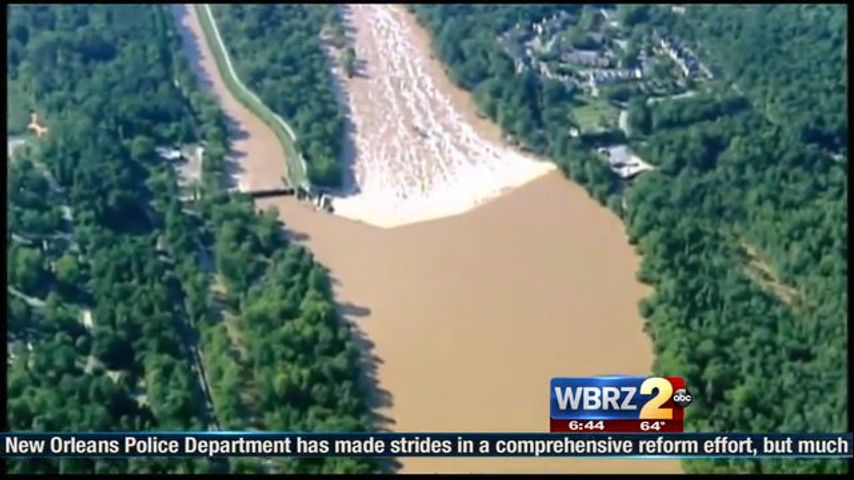 Jaco says officials had hoped to have the dam completed by Wednesday morning. But the normally calm waters of the canal looked more like a whitewater rapids course after days of record rainfall, making it difficult for workers to move equipment to put the dam in place.