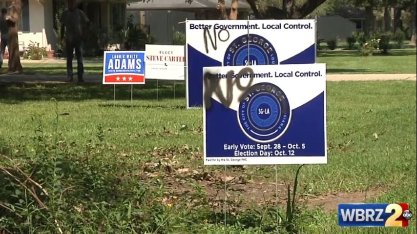 BATON ROUGE - Some people against the controversial City of St. George are now defacing signs supporting the incorporation.