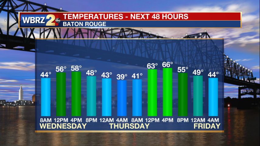 Get hour by hour weather and right now weather conditions for your location on the WBRZ WX App on your Apple or Android device. Follow WBRZ Weather on Facebook and Twitter for even more weather updates and unique weather insight from the whole team!