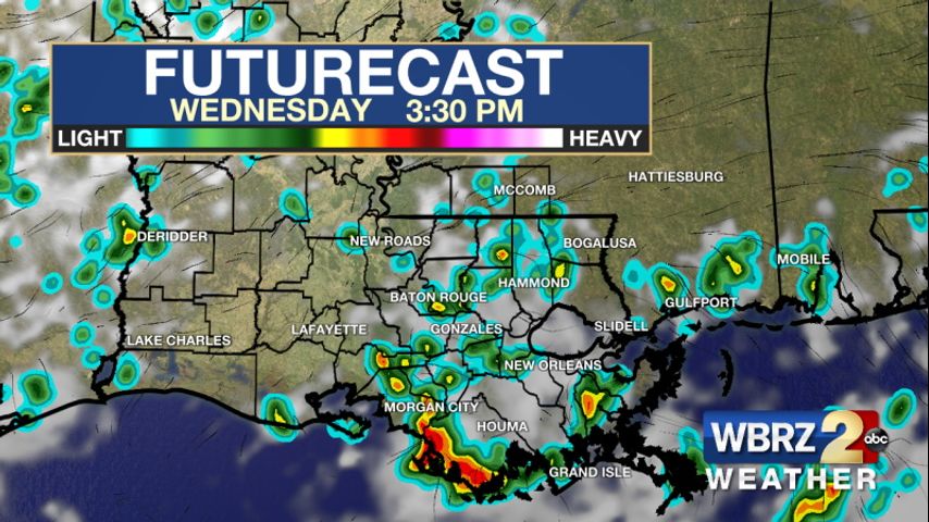 Up Next: The Wednesday pattern is set to repeat on Thursday and Friday. The morning hours will be quiet and hot before any storms move in. Most areas will see a brief shower and heavy downpours will be possible as well. Keep an eye out for street and poor drainage flooding. Temperatures will likely max out in the low 90s around noon and will cool as showers move in. Over the weekend showers will be more isolated and temperatures will still be near 90 degrees. Into next week, we will likely see an uptick in rain due to tropical activity in the Gulf. More on the tropics below. Click here to see the 7-day forecast.