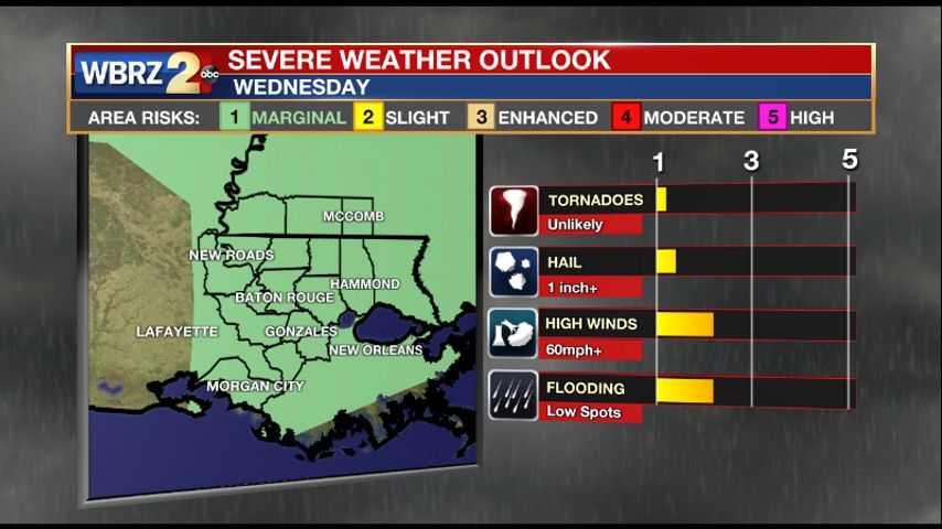 Reminder: With the threat for impactful weather— strong thunderstorms—please have access to alerts through Saturday. You can download or activate the WBRZ WX App on your Apple or Android device or turn on a NOAA Weather Radio for bulletins such as watches and urgent warnings. Of course, WBRZ, WBRZ+ and the Cable Weather Channel will have updates as active weather dictates.