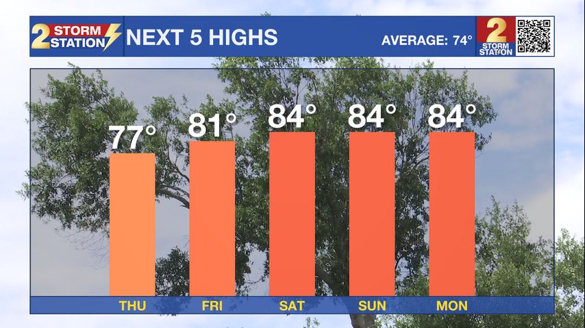 Tonight & Tomorrow: Plants are no longer in danger from a frost or freeze. Still take a jacket in the morning, as lows will settle in the mid-40s under a mainly clear sky. The extra layer will not be necessary by the afternoon. Highs will jump about 10° relative to Wednesday, into the mid-to-upper 70s. This is just a touch above average for the time of year.