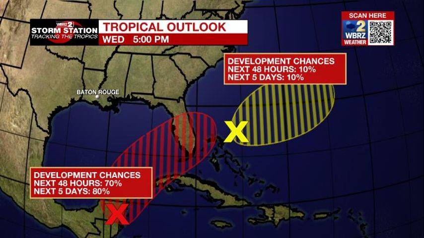 The Tropics: A broad area of low pressure located near the east coast of the Yucatan Peninsula is producing a large area of disorganized showers and thunderstorms. Despite strong upper-level winds, gradual development is forecast and there is an 80 percent chance that this system becomes a tropical depression while it moves slowly northeastward over the northwestern Caribbean Sea and southeastern Gulf of Mexico during the next day or two. Regardless of development, locally heavy rainfall is likely across portions of South Florida and the Florida Keys on Friday and Saturday. It does not pose a threat to the local area.