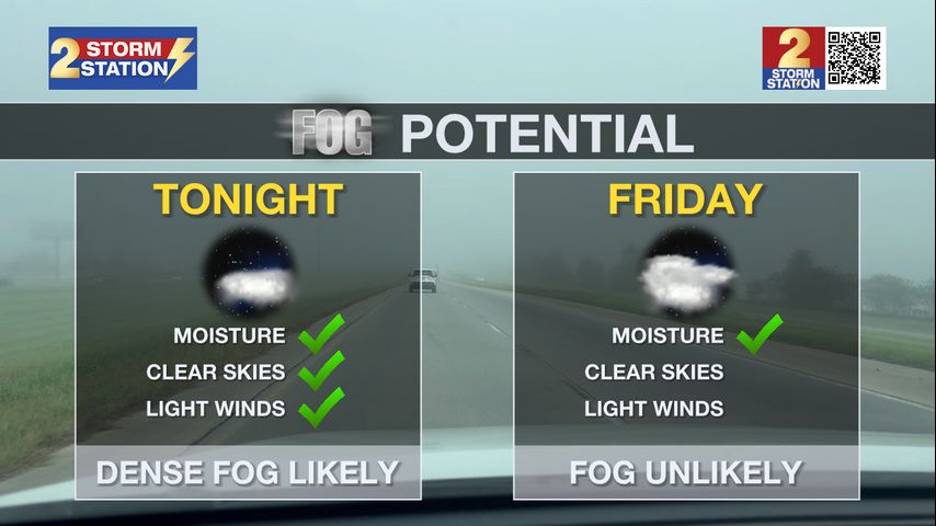 Tonight & Tomorrow: Expect fog to thicken overnight and early Thursday, thanks to mostly clear skies and calm winds. Poor visibility will be an issue for yet another morning commute, so be prepared for possible delays on the way to work or school. Wake-up temperatures will be in the low 60s. Fog will lift by mid-to-late morning, leaving a partly to mostly cloudy sky for the afternoon. Look for a high in the low 80s.