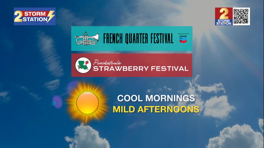 Weekend & Beyond: The weekend weather looks absolutely gorgeous for a busy festival-filled weekend. Sunshine will dominate, so do make sure to wear sunscreen. April sunshine is just as intense as the August sun. Cool mornings in the 40s and low-50s will transition to mild afternoons. Highs will warm into the mid-70s on Saturday before touching 80° on Sunday. Expect the mercury to continue to climb next week, and some will notice a touch of humidity. Even next week, rain chances appear slim.