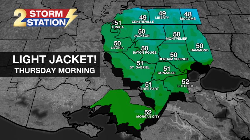 Tonight & Tomorrow: With little cloud cover and light east winds overnight, temperatures will be set to tumble into the upper 40s and low 50s. The coolest spots will be north and east of Baton Rouge, as usual. The next warming trend will begin on Thursday with southeast winds and mostly sunny skies sending afternoon highs into the upper 70s.