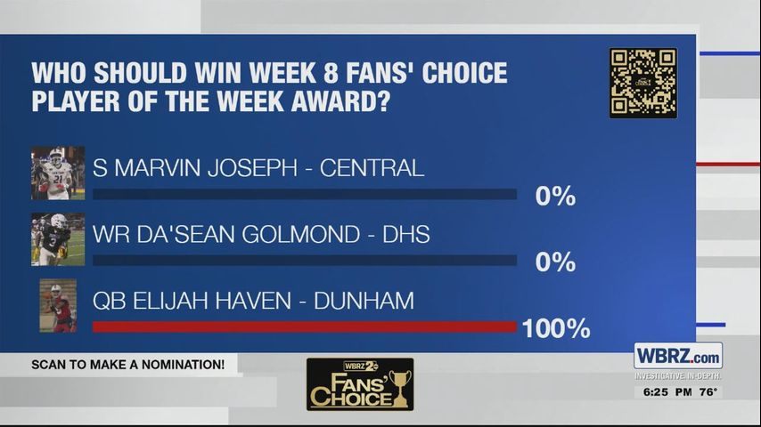 QB Elijah Haven - Dunham: The junior quarterback lit up the scoreboard in Dunham's shutout win over East Feliciana. Haven completed 19 of his 24 passes for 328 yards and 4 touchdowns.