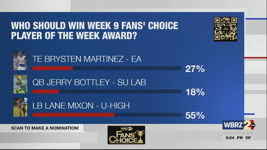 BATON ROUGE - It's the last week of the regular season, but we can't get there before naming our Fans' Choice Player of the Week for week 9.