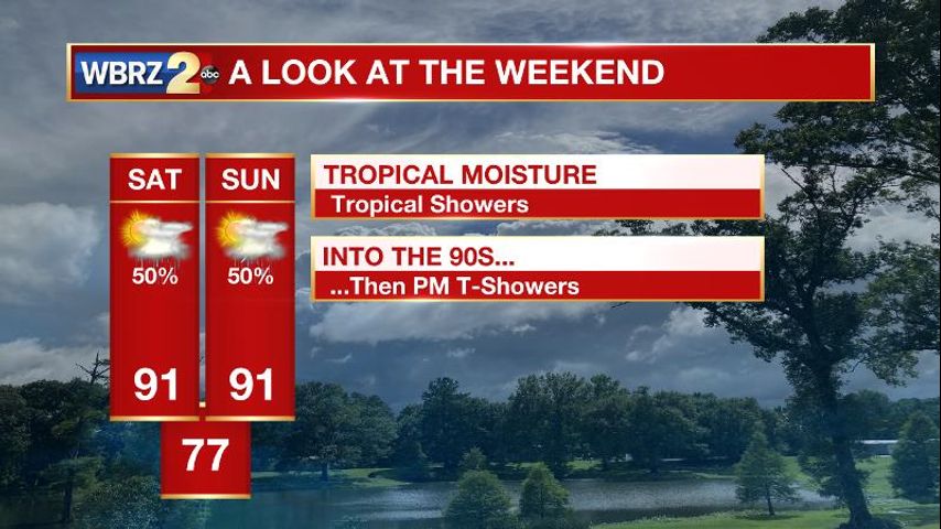 Tropical moisture will be slow to break and therefore plenty of afternoon showers and thunderstorms remain in the forecast. By next week, we have a shot at some drier but hotter conditions.