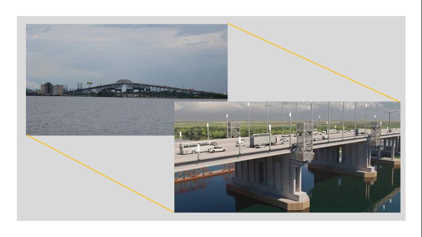 The existing span is 70 years old and predates the interstate highway system. It is steep, has no shoulders and is often a bottleneck for travelers between Louisiana and Houston. The new bridge won't be as steep. Ships serving the port at Lake Charles would not need to pass beneath the new span.