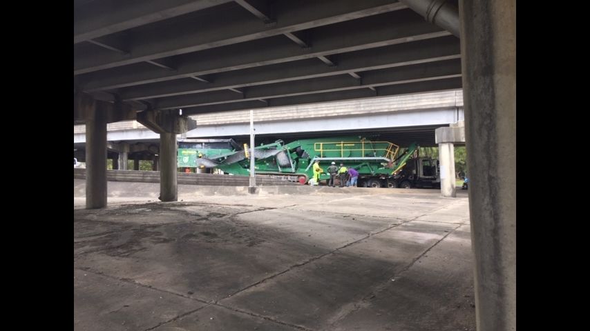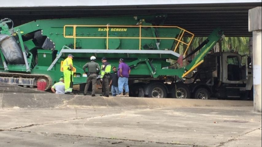 Whoops: Semi stuck under I-110 as BR is clogged with football fans