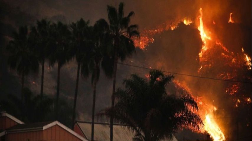 LATEST: Fast-moving Southern California wildfire causes at least 1 death, forces thousands to flee their homes, authorities in Ventura County say. https://t.co/1PeBldjupA pic.twitter.com/Nn9lfdqhCk