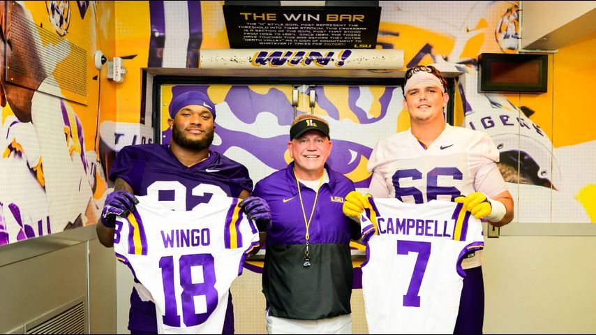BATON ROUGE – Defensive tackle Mekhi Wingo will wear the coveted No. 18 for LSU and offensive tackle Will Campbell has been awarded the No. 7, head coach Brian Kelly announced on Saturday.