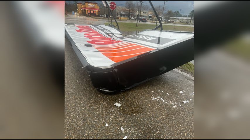 Photos shared with WBRZ showed the sign downed outside the Autozone at the corner of Walker South Road and Brian Park Drive. Police said Brian Park was closed until workers could clear the sign off the road.