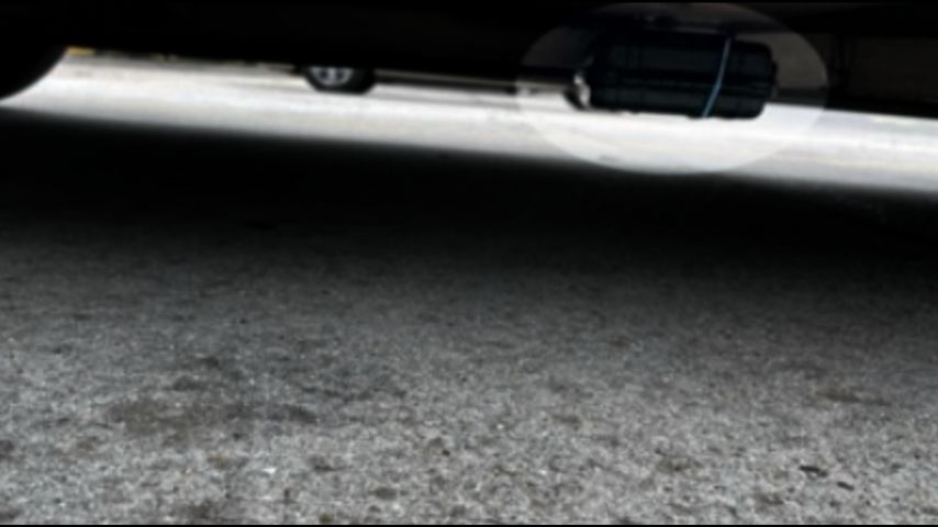 The device was found under the passenger side of her car. It's a black box with a lithium battery inside and a large magnet.