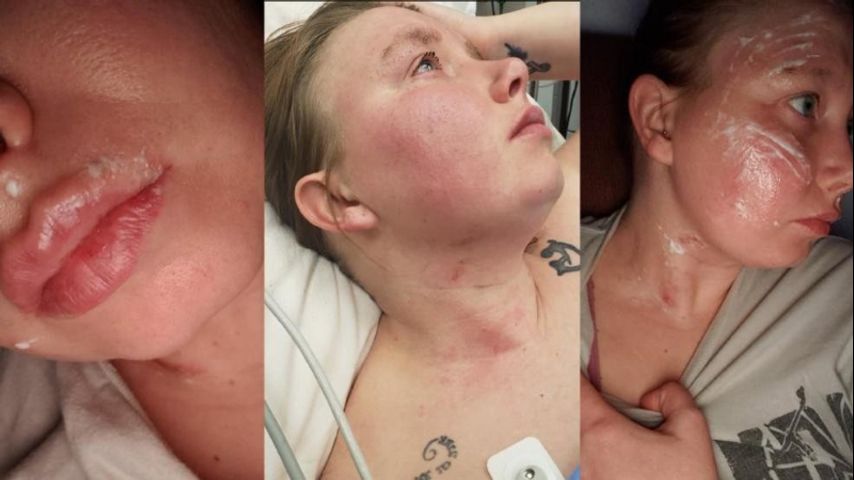 Myers was treated at a hospital for first-degree burns on her face and second-degree burns on her neck and chest. The flames also burnt off her eyelashes and eyebrows and burned her hair.