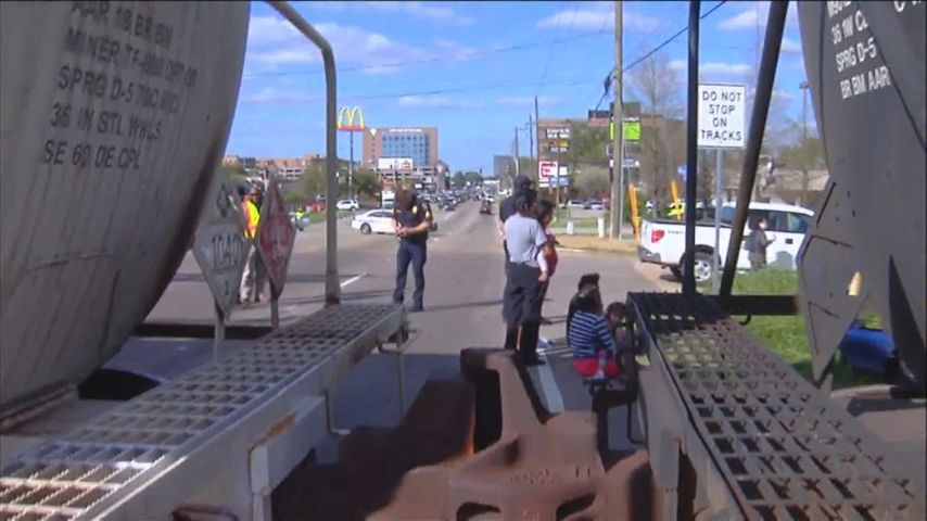 The tracks cross Essen Lane near Perkins and the wreck quickly blocked traffic. Traffic between I-10 and the tracks, headed toward Perkins was stopped. Traffic on the opposite side of the tracks was stopped, too, as cars waited to cross over the tracks toward I-10.