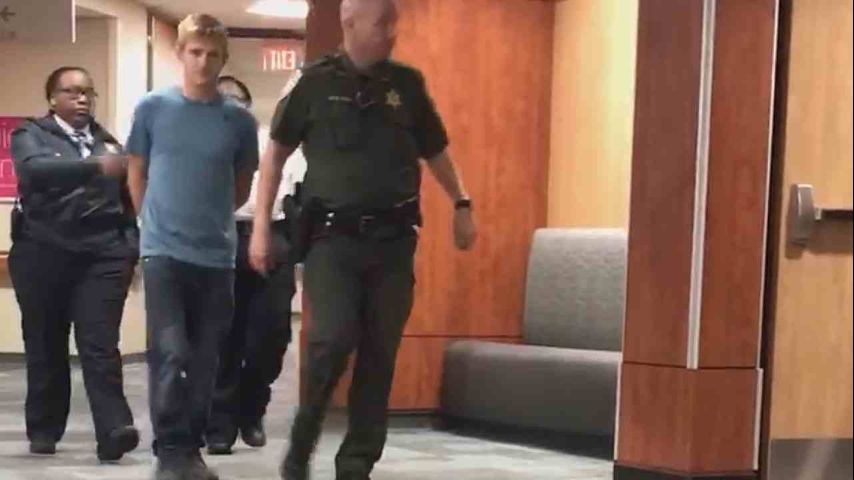 We don't know if it's a boy or a girl, but Carrier captured cell phone video of Anglin being put in handcuffs and escorted out of the hospital.