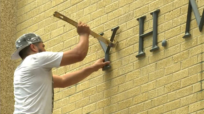 Workers had already removed the name removed from the front and back of the building by 3 o'clock. A plaque honoring Middleton was also removed from the front entrance.