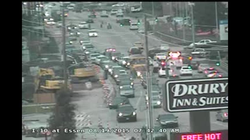 UPDATE: The center lane has been cleared but now the right lane is blocked on Essen for vehicle recovery efforts. The traffic back up has reached the Unite Plaza Boulevard on Essen.