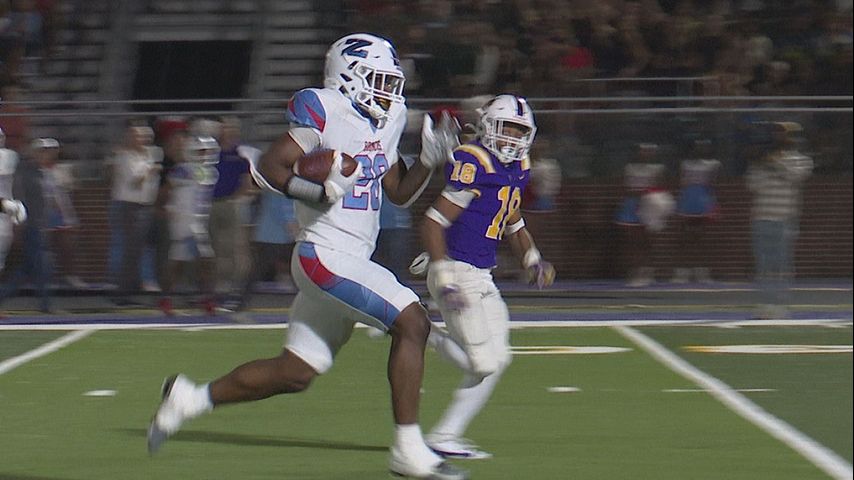 The Broncos find an answer with less than a minute left until halftime. Leading 23-14, Zachary running back Tylek Lewis breaks free and takes it the distance for a touchdown. Zachary led 30-14 at halftime.